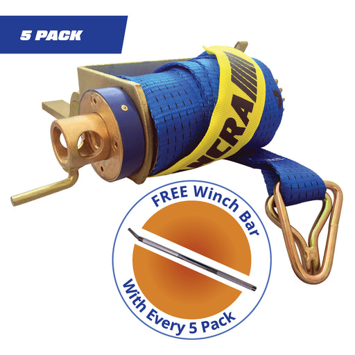 5 Pack Clip-On Ratchet Cap Winch c/w 50mm x 9m Strap